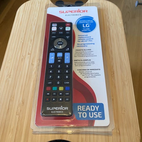 Magic Remote er LG sin fjernkontroll med pekesystem (du kan peke på skjermen som en mus). Denne er den klassiske vanlige IR-fjernkontrollen uten pekerfunksjon, men med alle de vanlige knappene pluss dedikerte Netflix- og Amazon Prime-knapper.
