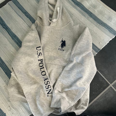 Ralph Lauren Polo hettegenser for herre i størrelse M. Genseren er grå og laget i bomull. Klassisk hettegensermodell med hette og snøring, kengurulomme foran og ribbestrikkede kanter nederst og på ermene. Stor «POLO»-logo på brystet. Passer til hverdagsbruk og fritid.