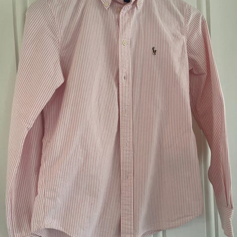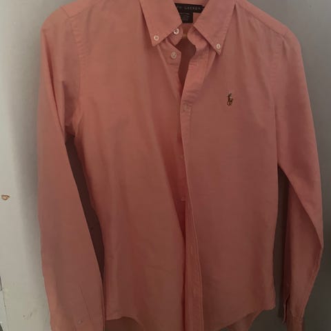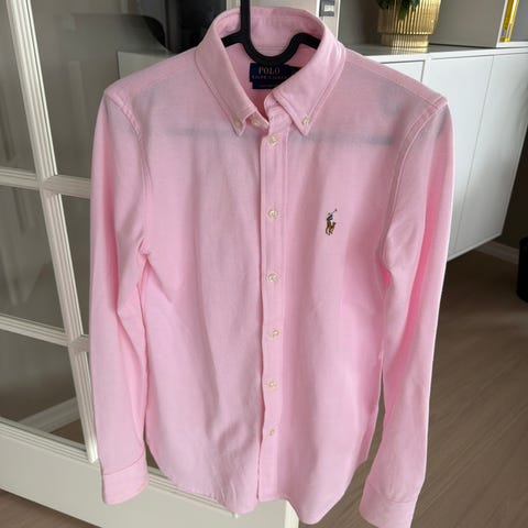 Polo Ralph Lauren skjorte for dame i størrelse S. Skjorten er rosa og laget av bomull. Klassisk modell med krage, knappelukking foran og lang erm. Brodert Polo Ralph Lauren-logo på brystet. Passer til både hverdagsbruk og mer formelle anledninger.