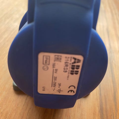 CEE blå 3-polet industrikontakt, til strøminntak Bavaria Farr 2012 modell