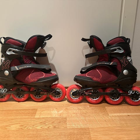 Action rulleskøyter i størrelse 40. Myk, polstret innersko og ytre skall med snøring, spenne og borrelås for justering og støtte. Flere hjul på rekke (inline) egnet til fritidsbruk på asfalt og andre jevne underlag. Passer til skøytesport med rulleskøyter for ungdom eller voksne som bruker skostørrelse 40.