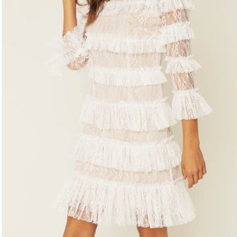 Selger en utrolig feminin og elegant blondekjole som sitter kjempefint på kroppen 🤍