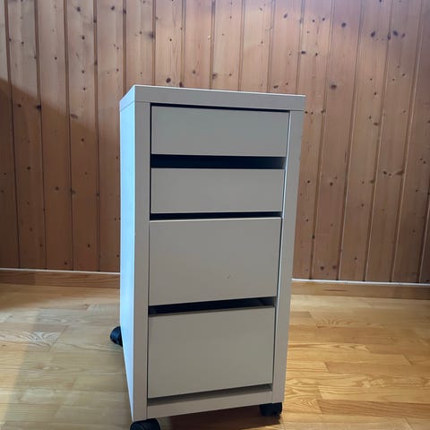 Skuffseksjon på hjul i bøk, 4skuffers, pent brukt.