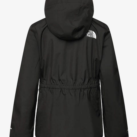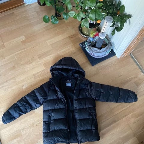 The North Face jakke for gutt i størrelse 158. Jakken er svart og laget i bomullsmateriale. Modellen har høy krage og glidelås i front, samt sidelommer med glidelås. Logo er plassert på brystet og øverst på ryggen. Passer til hverdagsbruk og som ytterjakke i overgangssesonger. Det er synlig rifter/skade på ett erme, som kan kreve reparasjon eller lapping før videre bruk.