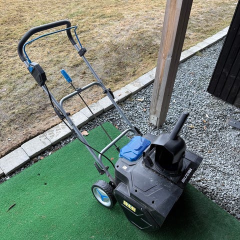 Biltema snøfreser elektrisk i blå og svart utførelse. Entrinns snøfreser med justerbar utkaster og håndtak med betjeningsbrytere. Egnet for rydding av snø på gårdsplass, innkjørsel, gangvei eller terrasse. Elektrisk drift krever tilkobling til strøm via skjøteledning. Maskinen har to hjul bak for enkel manøvrering og håndtak som kan foldes for lagring.