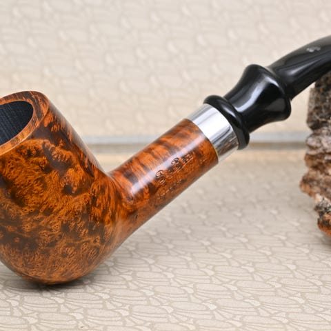 Tilstand: Pent eksemplar med normale spor etter bruk. Renset og kontrollert. Munnstykket er polert. Mørkning (ca. 1 mm) på fremre del av kammerkant( se foto). Begrenset kun til kanten som avfotografert.