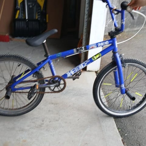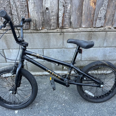 BMX fra biltema. Godt brukt, uten forbrems (demontert). Pegs forran og bak.