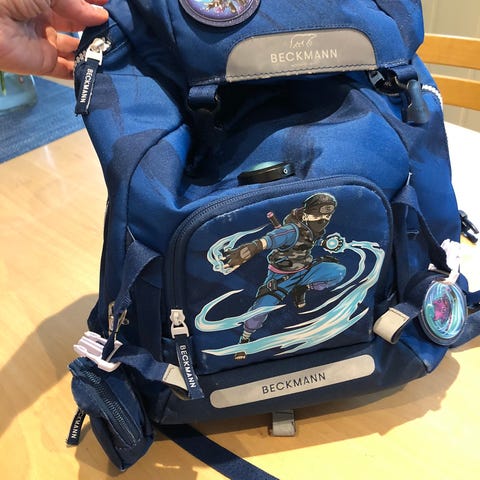 Lite brukt Beckmann skulesekk. Fin både utanpå og inni. Blå med blomstermønster. Passar til ungar på barneskulen (1. - 7. kl.). Sender gjerne!
