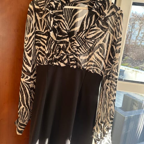 Blusen har et mønster med gjennomsiktige nett deler og er ment å brukes med en liten popp under. Den er aldri brukt .
