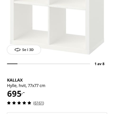 Høyglans Kallax hylle. Ikke noen synlige bruksmerker.