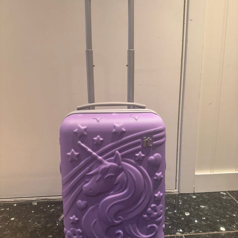 Kabinkoffert, lilla med enhjørningmotiv i hardplast. Merke: It.