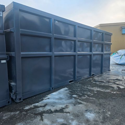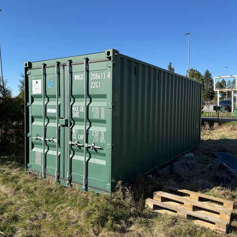 20 fots container med side åpning og port i enden selges. Har vært brukt til verksted. Kledd innvendig . installerte med lys og strømuttaka. Den har uttrekk bein under og kan flyttes med kontainer bil. Beina ligger no under, og må hentes med kranbil. Bilde kommer.