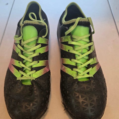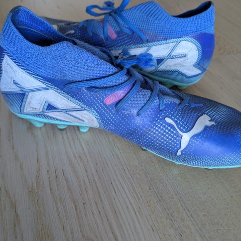 Knottene er tilpasset kunstgress. Skoene har ingen slitasjeskader da de har vært lite brukt, men har bruksmerker som det fremkommer av bildene.