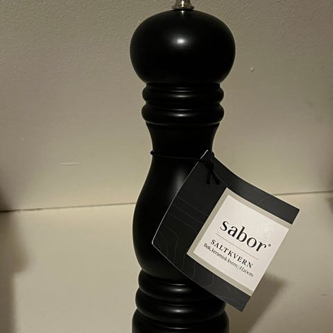 Norm Bottle Grinder krydderkvern 2-pack. Sett med to kverner i flaskeform, én svart og én lys. Kvernene har keramisk kvernverk og deler i plast, med topp i tre. Egnet til maling av salt, pepper og annet krydder. Designet for å gi jevn kverning og enkel bruk på kjøkkenet og ved borddekking.
