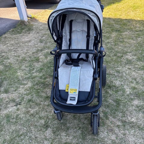 Vognen er brukt, så den har en del kosmetisk slitasje med riper og merker på både ramme og den ergonomiske sittedelen. Dette synes på bildene. Ellers er vognen i god stand og fungerer veldig godt.