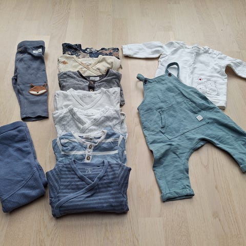 Babyklær (stor klespakke) til tvillinger str 56 til salgs - 26 plagg