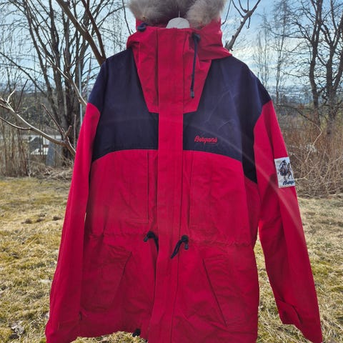 Norrøna jakke for herre i størrelse S. Stor i størrelsen. Jakken er rød med mørke kontrastfelt på skuldre og ermer. Materiale i Gore-Tex som gir vann- og vindtett ytterstoff med pustende egenskaper.