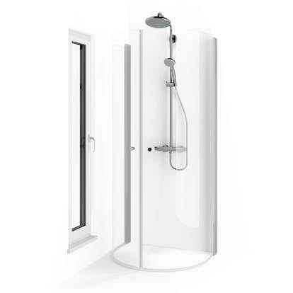 Macro Empire dusjhjørne med sprosser, hvite profiler og klart glass. Str. 80x90. Høyde 2m. Sprossene kan tas av for enklere renhold og er på utsiden av dusjen. Utstilling selges som den står, førpris 17285kr nå 60% avslag