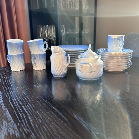 Diverse servise fra Porsgrunn fra det jeg tror er serien Bogstad "Maud". Det har gullkant.