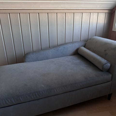 Flott Hjellegjerde Mandal daybed. Tekstil Lagune velvet 1454. Trekt høyre side. Selges grunnet behov for større sittegruppe.