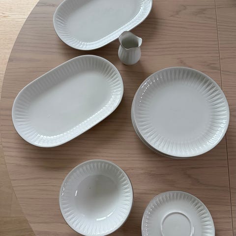 Nydelig fat, sukkerskål og liten mugge fra Porsgrund