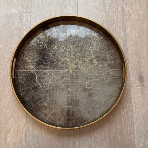 Nydelig dekorativt speilfat med stoffbelegg og møbelknotter under.