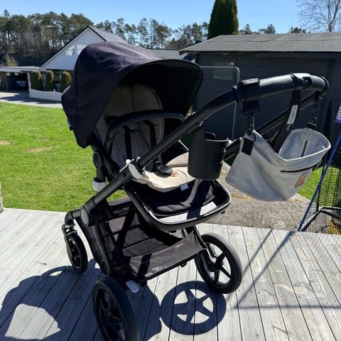 Thule bagdel til barnevogn i svart tekstil. Bagen har justerbar kalesje og avtagbart trekk i front. Den er beregnet for spedbarn og kan festes på kompatibel Thule-vogn. Den har litt slitasje på trekket (vedlagt bilde) men har ingenting å si for bruk.