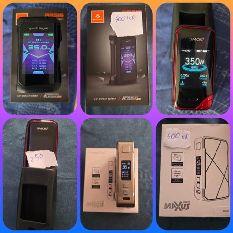 Jeg anbefaler alltid å kjøpe ny coil og din egen dampvæske/e-juice, da disse er rene forbruksvarer. Coil må alltid byttes jevnlig for å unngå brent smak! Har brukt denne damperen noen år. Se bilder m/kvittering. Men alt virker ok. Festet under tankmodulen er bittegranne løs, men er ingen teknisk hindring for bruk.