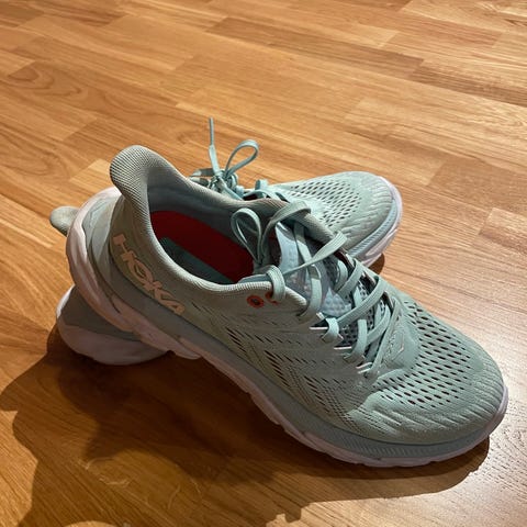 Nike Free Metcon sko i størrelse 40. Skoene er i tekstil med hvit overdel og turkise detaljer, samt turkis yttersåle. Modellen har snøring foran og hempe bak for enklere av- og påtaking. Sålen har mønster som gir grep ved bruk på ulike underlag. Egnet som fritids- og treningssko.
