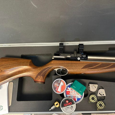Har blitt brukt mye men den er blitt fint behandlet, renset etter hver skyting og har blitt testet ofte i benk.