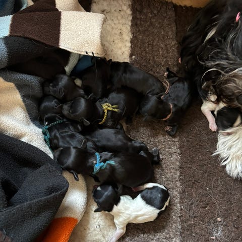 Mamman til kullet er CIB NO SE DK CH Black Elite Gold Digger, Kin til hverdags. Dette er Kins andre kull og hun er like flink denne gangen som hun var sist. Sprek og aktiv under hele drektigheten og ville være med på tur hele veien. Fødselen gikk som en drøm og alle valpene ble født på 2 timer. Kin er en flink mamma som passer på sine små med stort ansvar.