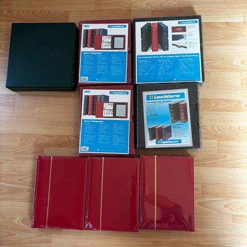 34 stk Leuchtturm VARIO 5S samlerark med svarte plastlommer. Arkene har 5 horisontale lommer per side og er beregnet for oppbevaring og organisering av samlerobjekter som frimerker, kort eller lignende i ringpermer. Plastlommene er gjennomhullede langs siden for innsetting i standard samlerpermer i VARIO-systemet. Materiale er plast med svart bakgrunn som gir kontrast til innholdet.