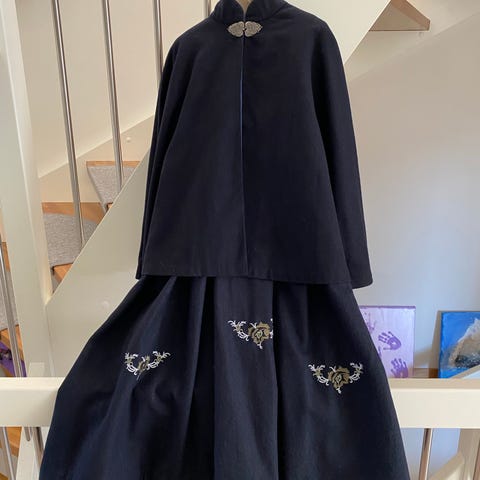 Nydelig festdrakt fra Maxemilia selges. Str 8-10 år, med cape , veske og bunadskjorte. Skjorte mangler knapper på ermene.