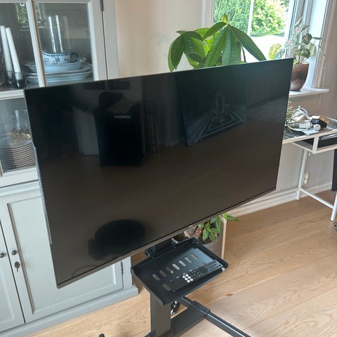 Selger en LG 55” 4K Smart-TV (55SM8200PLA) med et veldig praktisk og solid gulvstativ med hjul.