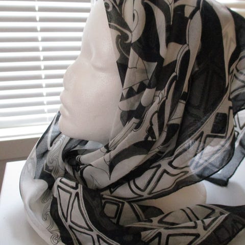 Svart trekantet sjal med blomsterdetaljer