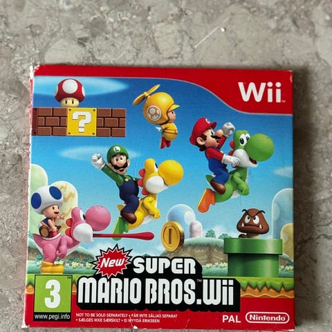 Selger en fin eksemplar av New Super Mario Bros til Nintendo Wii. Testet og fungerer helt fint.
