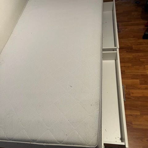 Enkeltseng gis bort, skum madrass som er litt smal i sengen kan følge med om ønskelig. Må hentes i 3 etasje uten heis på Bolteløkka/adamstuen. Har ikke verktøy så dessverre ikke mulighet til å skru den fra hverandre selv:)