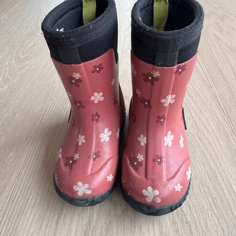 Dock boots i mønster fra Kattnakken i str 22. Brukt fra august til oktober 2025. Gode sko som passer i all slags vær. Datteren min har vokst ut av disse. Ingen skader, mye bruk igjen.