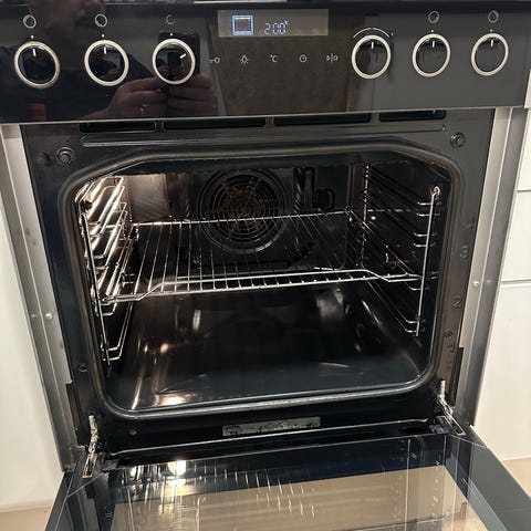 Gorenje keramisk komfyr. Komfyren har keramisk platetopp og integrert stekeovn med front i stål og glass. Betjening skjer via dreieknapper og digitalt display øverst på fronten. Passer til vanlig frittstående plassering på kjøkken.