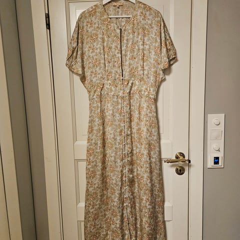 Lang kjole fra H&M. Knapper helt ned og knyting i livet. Glatt og litt tungt stoff som faller fint.