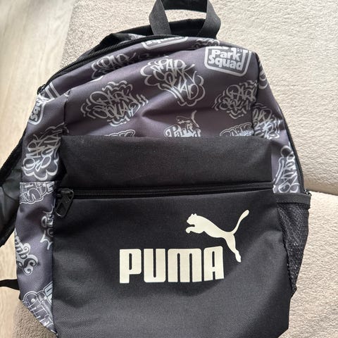 Puma ryggsekk i plastmateriale for unisex. Sekken er svart med mønster og Puma-logo på fronten. Hovedrommet har glidelåslukking og god plass til innhold. I tillegg finnes det et mindre rom med glidelås på fronten for oppbevaring av mindre gjenstander. Egnet til daglig bruk, skole eller fritidsaktiviteter.