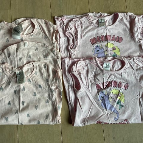 Fire nattkjoler i str 110/116. De to til venstre er fra H&M og de to andre fra Cubus.