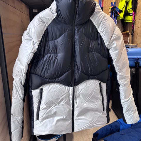 Pent brukt Peak Performance Frost DH vinterjakke for herre i størrelse M. Jakken er fylt med dun og har et vattert, quiltet design som gir jevn isolasjon. Fargen er blå.