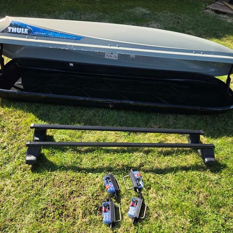 Thule takboks i svart farge. Aerodynamisk modell med åpning fra siden og innvendige festepunkter for last. Passer montering på takstativ/bagasjebøyler på bil. Egnet for ekstra bagasje, ski og annet utstyr på bilturer.