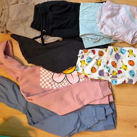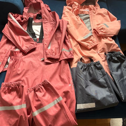 10 sett av jente klær i str. 116-122. Fint brukt og mye bruk igjen. Veldig praktisk til vår og høst.