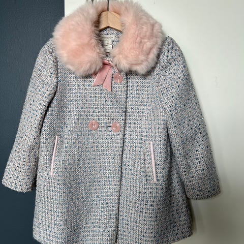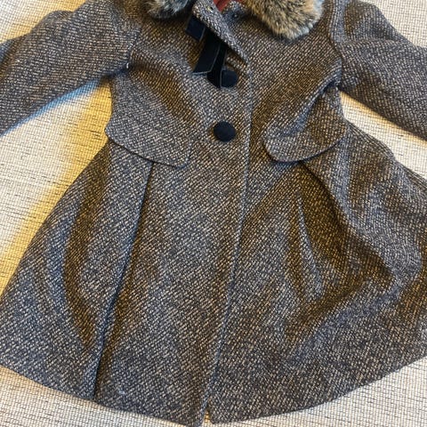 Meget pent brukt kåpe str 3-4 år (vil si den tilsvarer str 98/104). Pelskragen kan kneppes av.