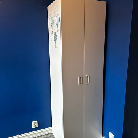 Godt brukt garderobeskap fra IKEA, som fortsatt har mange års bruk igjen. Den har praktiske nettingkurver og skuffer som kan skyves ut.