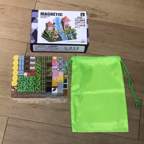 Minecraft-inspirert byggesett med 200 magnetiske deler inkl. oppbevaringspose🧱