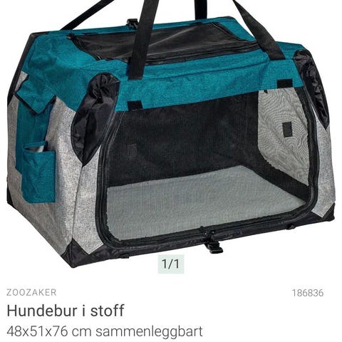 Zoozaker hundebur i stoff fra Europris.