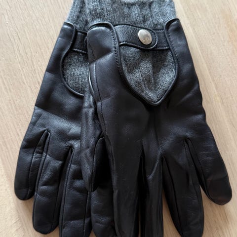 Gant hansker for herre i størrelse L. Hanskene er laget i brunt skinn med elastisk mansjett i tekstil for bedre passform rundt håndleddet. Egnet til bruk på kjølige dager som et enkelt og klassisk tilbehør i hverdagen.
